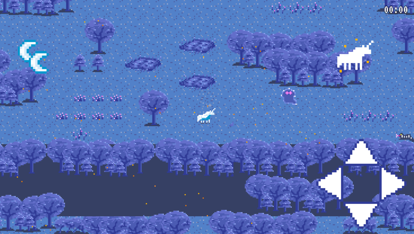 Lunicorn is a bright and colorful game world, with original 8 bit pixel art by Kevin Ross. Traverse glades and swamps, forests and even the dreaded Realm of Doom in your quest to save the magic of Lunicorn Forest. You will face new enemies at each turn, from the dreaded Moon Muncher to venomous snakes and gargoyles.